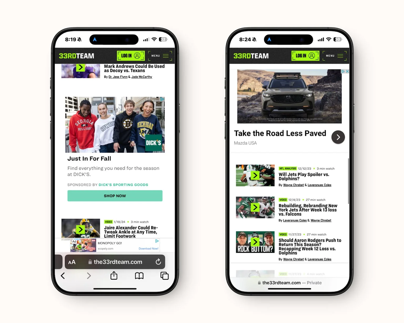 Strategizing ad placements and sponsorships: After the site launch, The 33rdTeam saw a significant increase in their ad impressions. After identifying high-traffic areas from their team, we were able to strategically place ads and sponsored content in locations that maximized visibility without disrupting the browsing experience.