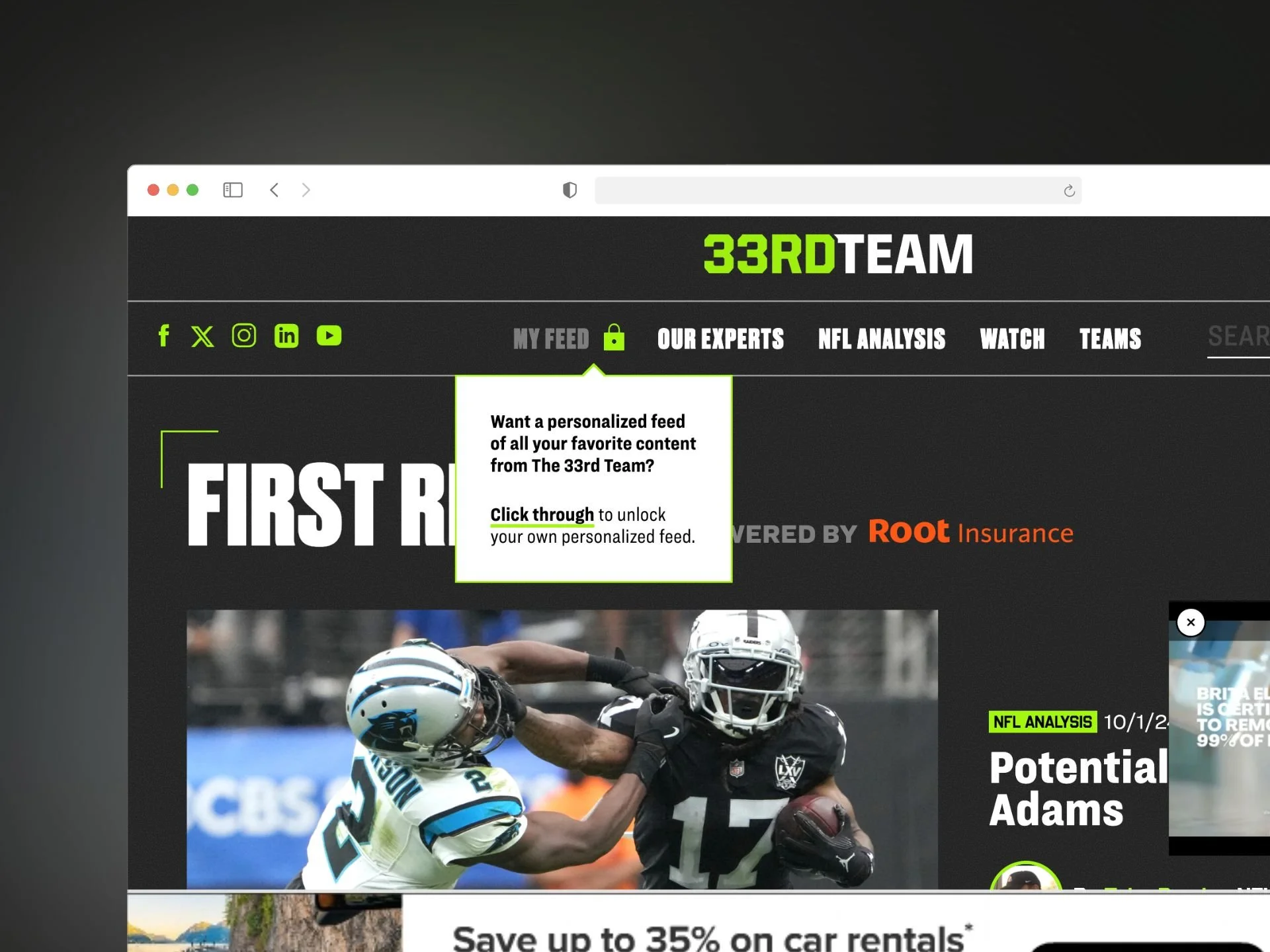 The 33rd Team is a premier football editorial content platform and thought leader in the fantasy football and betting space. They feature content created by head NFL coaches, players, and leaders. My team and I redesigned their website in order to increase speed, engagement, brand awareness, ad revenue, and improve overall functionality for their users.